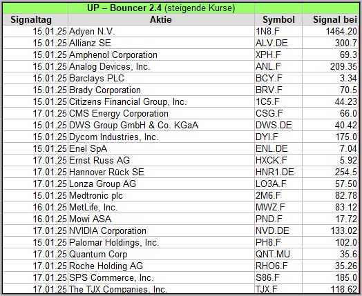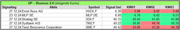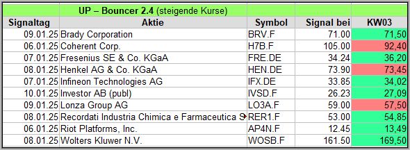 Auf diesem veröffentliche ich über einen Zeitraum von 4 Wochen die Ergebnisse meiner Bouncer Signale, die ein wöchentliches Update erhalten, um die Wirksamkeit zu prüfen. Bitte die Hinweise am Ende beachten. Die aktuellen Signale veröffentliche ich täglich auf meinem Facebook Gruppe .