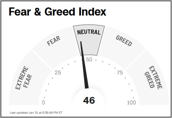 Der Fear & Greed Index hat sich in dieser Woche nur wenig bewegt und liegt weiter im neutralen Bereich dabei hat er sich von 49 Punkten , auf jetzt 46 Punkte bewegt.
