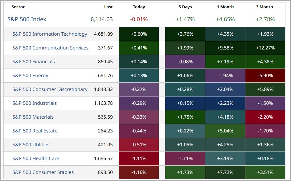Am Freitag , lag 4 (0) der 11 Sektoren im Plus und es wurden -0,01% (-0,95%) an Liquidität abgezogen.