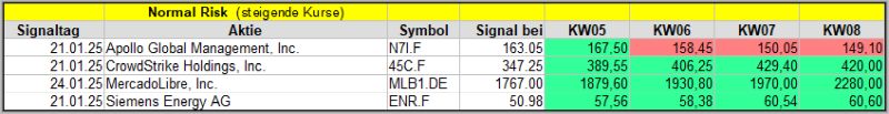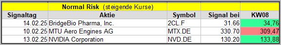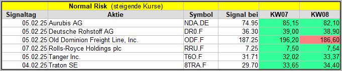 In dieser Woche wurden 3 Signale gefunden. Nach der 1. Woche liegen 2 der 3 Werte im Plus. ![]()