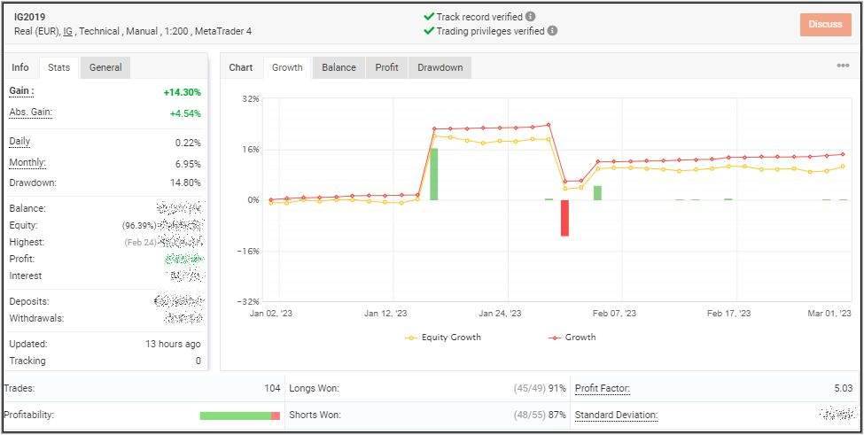 Aktuell kann man die kleinen Balken der Anstieg leider nicht mehr erkennen, da der Maßstab durch die großen Balken etwas verzerrt ist (Fehler bei Myfxbook).