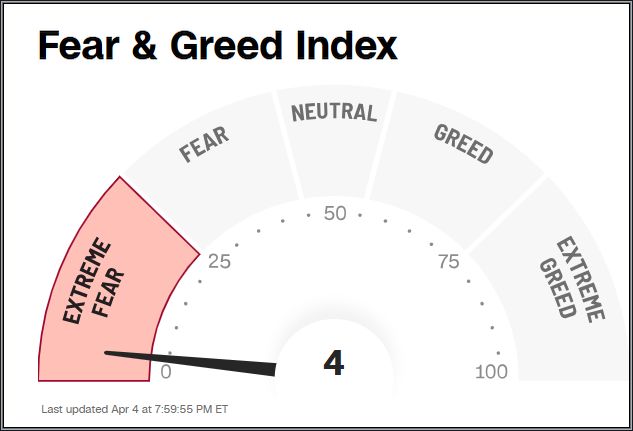 Der Fear & Greed Index hat sich in dieser Woche weit in den Bereich der extremen Angst bewegt. Dabei gab er von 22 auf nur noch 4 Punkte nach.
