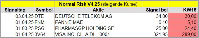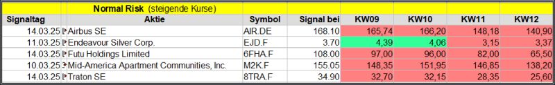 Nachfolgend die fortlaufenden Screener-Ergebnisse der vergangenen 4 Wochen anhand denen jeder selbst prüfen kann, wie erfolgreich eigene Auswahl aus den angebotenen Signal-Werten gewesen wäre.