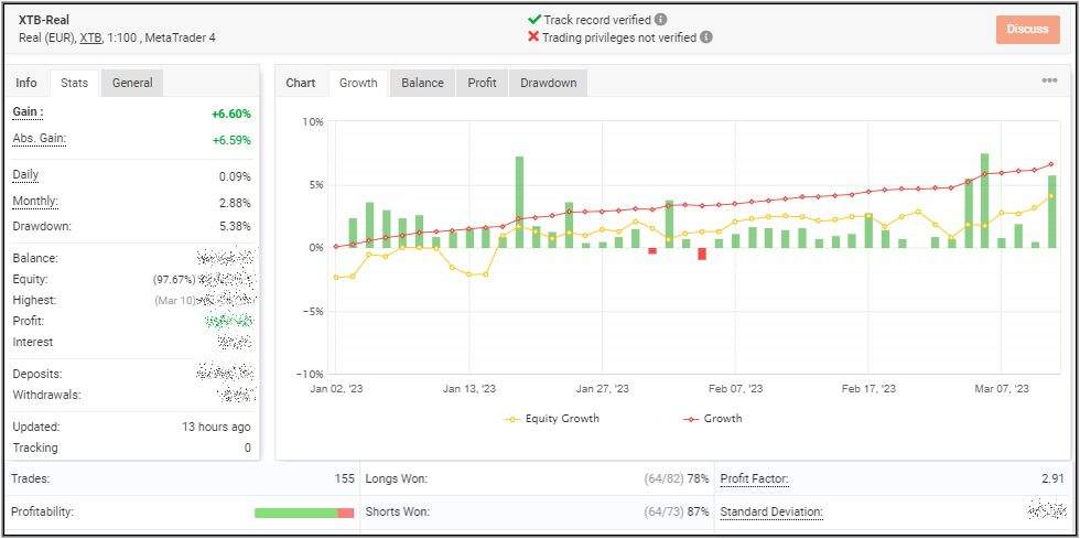 Aktuell kann man die kleinen Balken der Anstieg leider nicht mehr erkennen, da der Maßstab durch die großen Balken etwas verzerrt ist (Fehler bei Myfxbook).