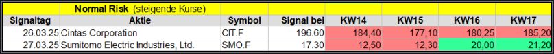 Immerhin gab es in dieser Woche 4 Signale und sollten die Kurse allgemein weiter ansteigen, dürften noch einige Folgen in den nächsten Wochen.