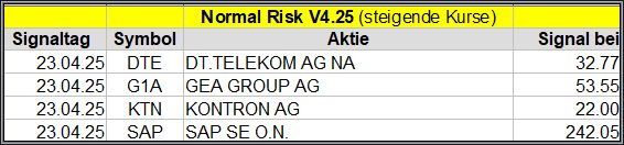 Bei den Signalen handelt es sich nur um eine Vorauswahl, die man selbst prüfen und entsprechend nutzen könnte. Die Signale werden börsentäglich in der FB Gruppe AktienChartCheck kostenfrei veröffentlicht. Wieso also Geld ausgeben und möglicherweise auf dubiose Anbieter hereinfallen?
