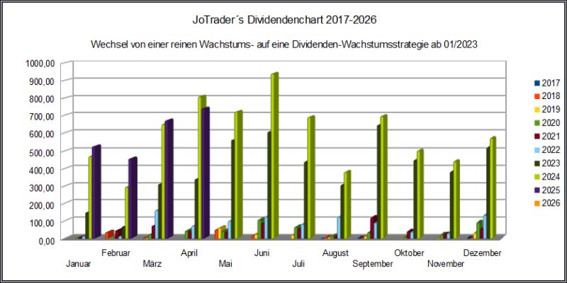 In der kompakten Übersicht der Jahresdividenden von 2017-2026 wurde knapp ein Drittel des geplanten Gesamtergebnisses erreicht.