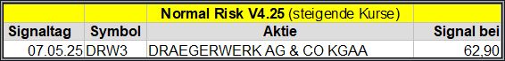 Den Kursverlauf der einzelnen Werte verfolge ich ab einem generierten Signal, über einen Zeitraum von 4 Wochen und mit einem wöchentlichen Update. (Kursiv geschriebene Texte sind in der Regel Texte aus der Vergangenheit bzw. sind Hinweise.)