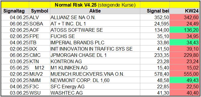 Diese Woche gab es 13 Signale. Nach der 1. Woche liegen 3 der 13 Werte im Plus. Angriff Israel gegen Iran.