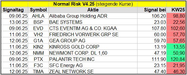 Diese Woche gab es 10 Signale. Nach der 1 Woche haben es trotz dem Angriff Israel auf den Iran, 3 Werte der 10 ins Plus geschafft