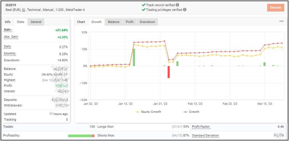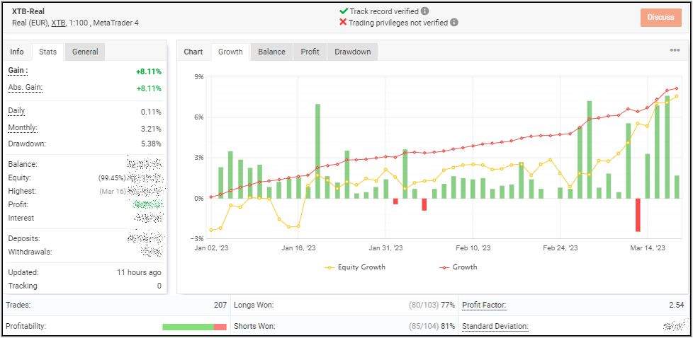 Aktuell kann man die kleinen Balken der Anstieg leider nicht mehr erkennen, da der Maßstab durch die großen Balken etwas verzerrt ist (Fehler bei Myfxbook).