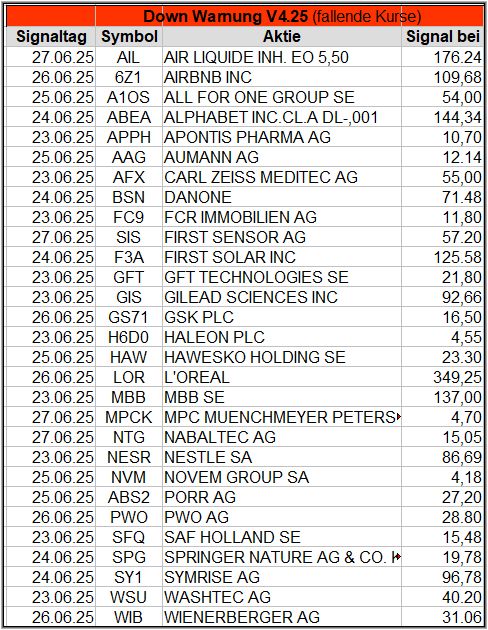 Bei den Signalen handelt es sich nur um eine Vorauswahl, die man selbst prüfen und entsprechend nutzen könnte. Die Signale werden börsentäglich in der FB Gruppe „Aktien Chart Check“ kostenfrei veröffentlicht.
