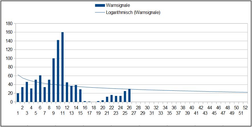 Nachfolgend die Anzahl der Warnsignale je Woche 2025.
