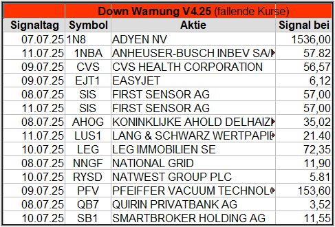 Diese Woche wurde von den ADP und den NFP Arbeitsmarktdaten geprägt, die sehr gut ausgefallen sind. Am Freitag hatten die USA dann Feiertag, so dass die anderen Märkte auf sich gestellt waren und sich eher schwach zeigten. Insgesamt lasten nun die möglichen Zölle immer mehr auf den Signalen. Steigt die Vola, steigt auch die Anzahl der Signale, weshalb manche Aktien über mehrere Wochen immer wieder ein Signal generieren.