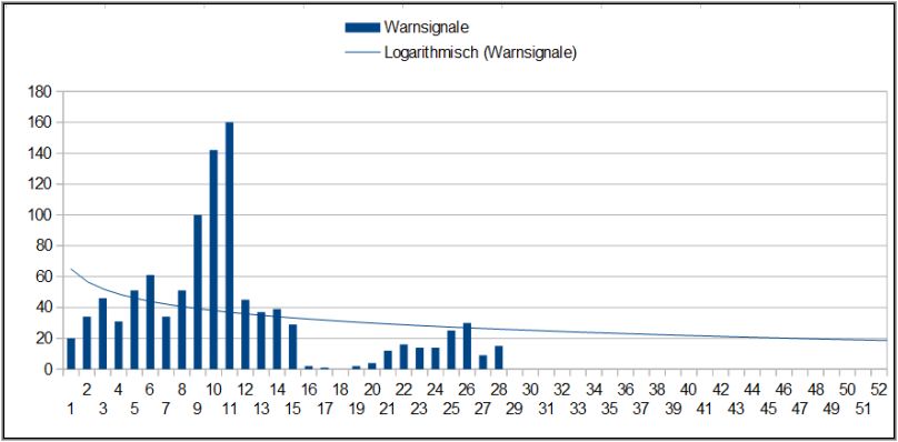Nachfolgend die Anzahl der Warnsignale je Woche 2025.
