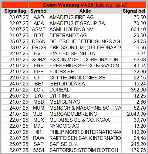 Diese Woche wurde von den ADP und den NFP Arbeitsmarktdaten geprägt, die sehr gut ausgefallen sind. Am Freitag hatten die USA dann Feiertag, so dass die anderen Märkte auf sich gestellt waren und sich eher schwach zeigten. Insgesamt lasten nun die möglichen Zölle immer mehr auf den Signalen. Steigt die Vola, steigt auch die Anzahl der Signale, weshalb manche Aktien über mehrere Wochen immer wieder ein Signal generieren.