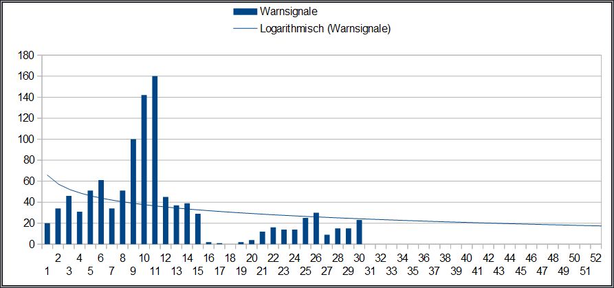 Nachfolgend die Anzahl der Warnsignale je Woche 2025.