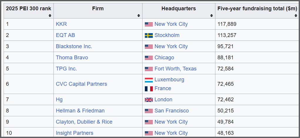 Übrigens: Im Jahr 2025 hat KKR die Blackstone-Gruppe von Platz 1 verdrängt.