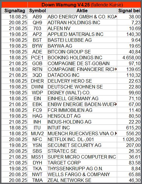 Bei den Signalen handelt es sich nur um eine Vorauswahl, die man selbst prüfen und entsprechend nutzen könnte. Die Signale werden börsentäglich in der FB Gruppe „Aktien Chart Check“ kostenfrei veröffentlicht.