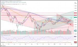 Oder ist das etwa eine Bullenflagge? Das könnte dann der Fall sein, wenn der Kurs über die 4.000$ nach oben ausbricht und dem neu eingezeichneten, steigenden Trendkanal folgen würde.