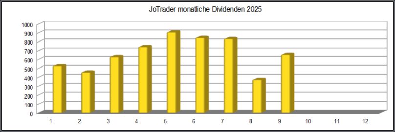 Die erste Grafik zeigt die monatlichen Dividenden-Einkünfte in 2025.