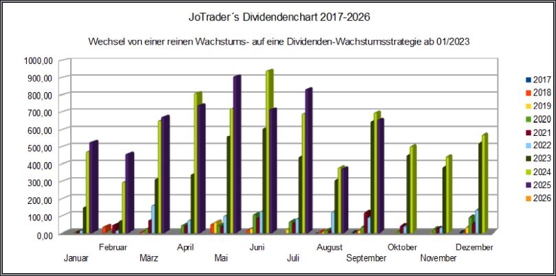 In der kompakten Übersicht der Jahresdividenden von 2017-2026 liegt das Jahr 2025 aktuell auf Platz 2, berechnet seit 2017 und es liegen noch 3 Monate vor uns.