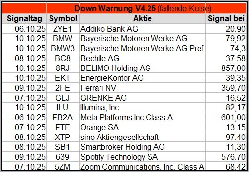 Bei den Signalen handelt es sich nur um eine Vorauswahl, die man selbst prüfen und entsprechend nutzen könnte. Die Signale werden börsentäglich in der FB Gruppe „Aktien Chart Check“ kostenfrei veröffentlicht.
