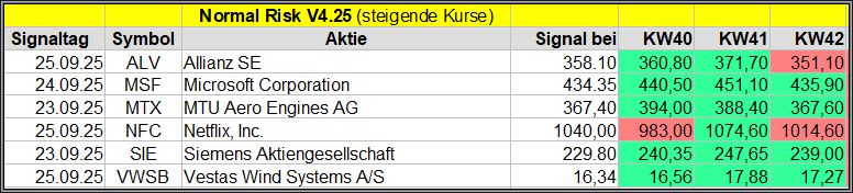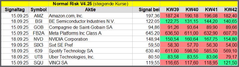 Nachfolgend die fortlaufenden Screener-Ergebnisse der vergangenen 4 Wochen anhand denen jeder selbst prüfen kann, wie erfolgreich die eigene Auswahl aus den angebotenen Signal-Werten, gewesen wäre.