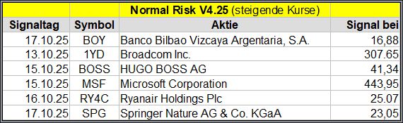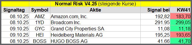Den Kursverlauf der einzelnen Werte verfolge ich ab einem generierten Signal, über einen Zeitraum von 4 Wochen und mit einem wöchentlichen Update. (Kursiv geschriebene Texte sind in der Regel Texte aus der Vergangenheit bzw. sind Hinweise.)