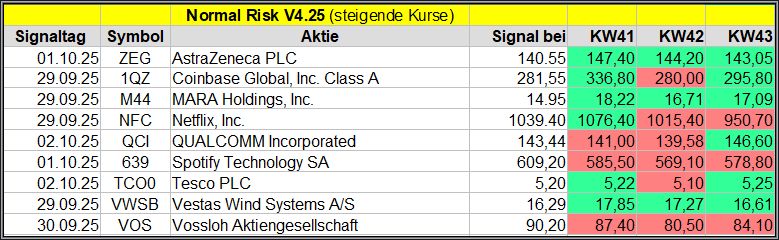Nachfolgend die fortlaufenden Screener-Ergebnisse der vergangenen 4 Wochen anhand denen jeder selbst prüfen kann, wie erfolgreich die eigene Auswahl aus den angebotenen Signal-Werten, gewesen wäre.