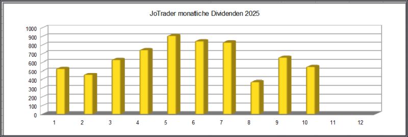 Die erste Grafik zeigt die monatlichen Dividenden-Einkünfte in 2025.