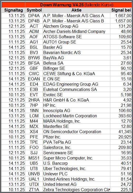 Bei den Signalen handelt es sich nur um eine Vorauswahl, die man selbst prüfen und entsprechend nutzen könnte. Die Signale werden börsentäglich in der FB Gruppe „Aktien Chart Check“ kostenfrei veröffentlicht.