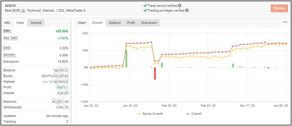 Ich weiß, der Verlauf der 3 EA´s erscheint zwar ziemlich langweilig, doch mir ist das völlig egal und ich lasse das einfach laufen. Ich schaue nur morgens und abends nach, ob der Laptop noch läuft, weil meine Katze gerne auf diesem schläft und schon öfters Stecker entfernt hat. Ansonsten schaue ich nur für diesen Beitrag nochmal danach, wie der Stand auf Myfxbook ist, wo alles automatisch mitgeschrieben wird.