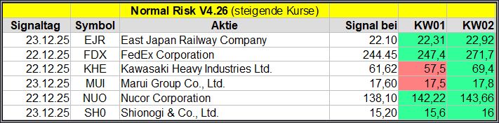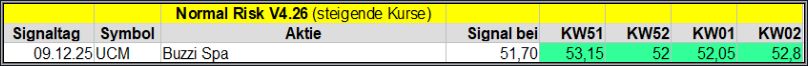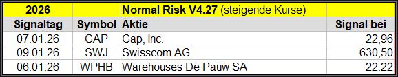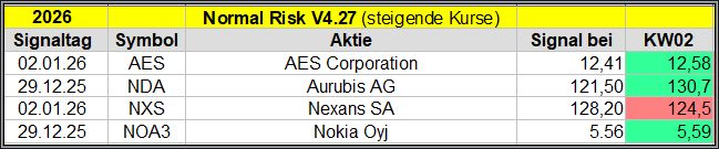 Den Kursverlauf der einzelnen Werte verfolge ich ab einem generierten Signal, über einen Zeitraum von 4 Wochen und mit einem wöchentlichen Update. (Kursiv geschriebene Texte sind in der Regel Texte aus der Vergangenheit bzw. sind Hinweise.)