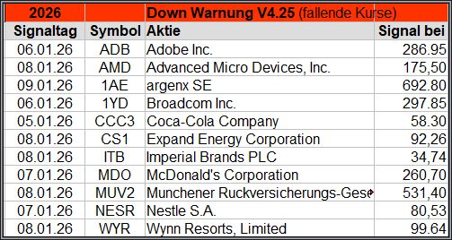 Bei den Signalen handelt es sich nur um eine Vorauswahl, die man selbst prüfen und entsprechend nutzen könnte. Die Signale werden börsentäglich in der FB Gruppe „Aktien Chart Check“ kostenfrei veröffentlicht.