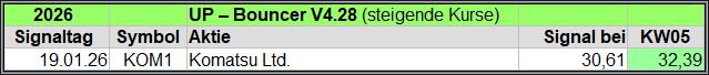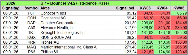 Übersicht der UP-Bouncer Signale je Woche 2026.