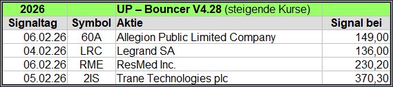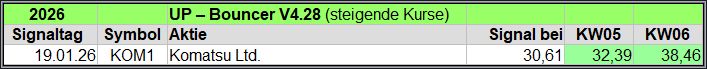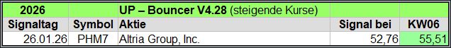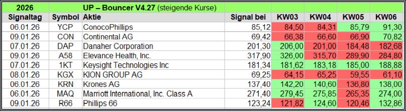 Übersicht der UP-Bouncer Signale je Woche 2026.