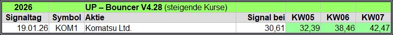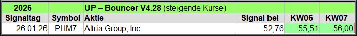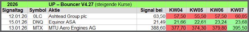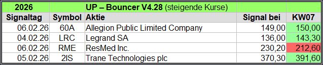 Übersicht der UP-Bouncer Signale je Woche 2026.