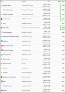 Einziger Wert im Minus ist Warner Bros, die ich aufgrund der geplanten Übernahme, lt. Levy eigentlich nicht hätte ins Depot nehmen sollen. Aber ich ziehe das nun durch.