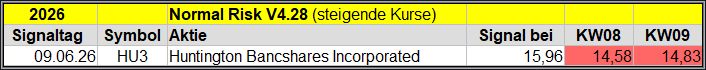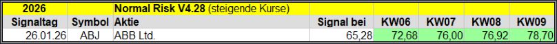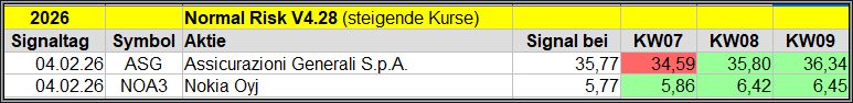 Den Kursverlauf der einzelnen Werte verfolge ich ab einem generierten Signal, über einen Zeitraum von 4 Wochen und mit einem wöchentlichen Update. (Kursiv geschriebene Texte sind in der Regel Texte aus der Vergangenheit bzw. sind Hinweise.)