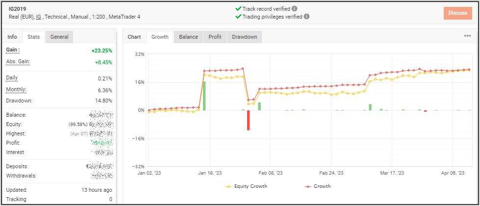 Ich weiß, der Verlauf der 3 EA´s erscheint zwar ziemlich langweilig, doch mir ist das völlig egal und ich lasse das einfach laufen. Ich schaue nur morgens und abends nach, ob der Laptop noch läuft, weil meine Katze gerne auf diesem schläft und schon öfters Stecker entfernt hat. Ansonsten schaue ich nur für diesen Beitrag nochmal danach, wie der Stand auf Myfxbook ist, wo alles automatisch mitgeschrieben wird.