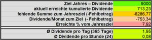 Mein Ziel für 2025 lag bei einer Gesamtdividende von mindestens 8.000€, nachdem diese im Vorjahr bei 6. 000€ lag und knapp überschritten worden war. Das Ziel für 2025 wurde knapp unterschritten (92,93%).