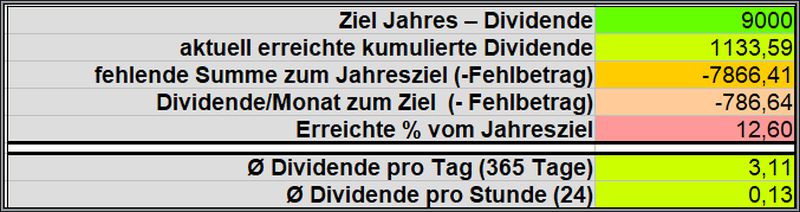Um das Jahresziel 2026 zu erreichen, müsste ich in den verbleibenden Monaten jeweils 786,64€ an Dividende generieren.