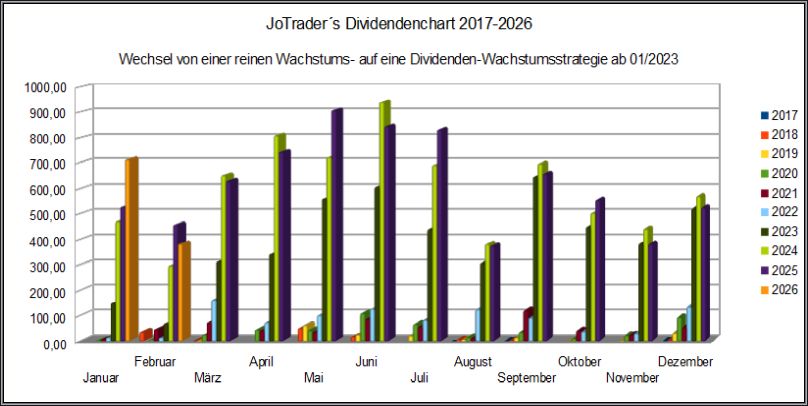 Die erste Grafik zeigt die monatlichen Dividenden-Einkünfte in 2026.