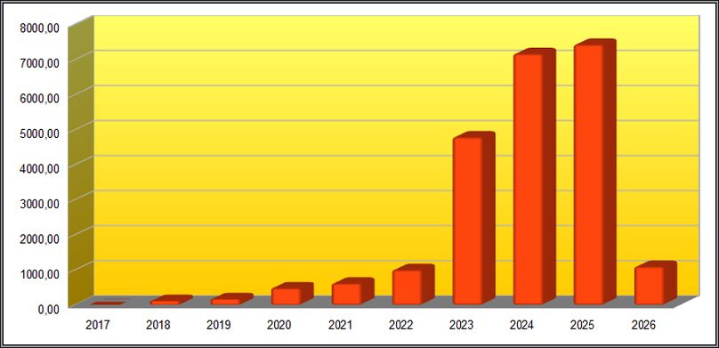 In der kompakten Übersicht der Jahresdividenden von 2017-2026 liegt das Jahr 2025 aktuell auf Platz 1, berechnet seit 2017 .