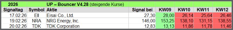 Übersicht der UP-Bouncer Signale je Woche 2026.