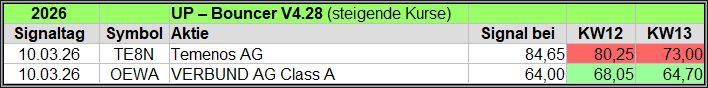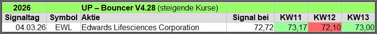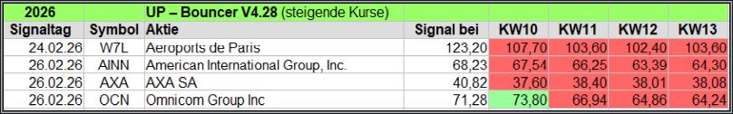 Übersicht der UP-Bouncer Signale je Woche 2026.