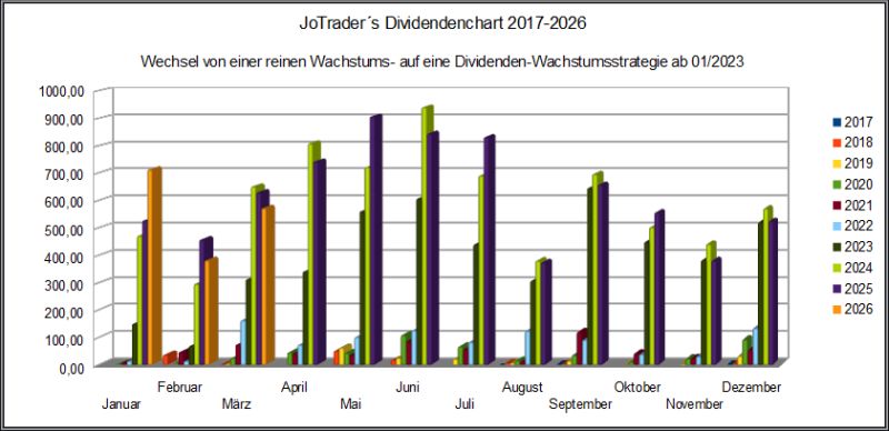 Die erste Grafik zeigt die monatlichen Dividenden-Einkünfte in 2026.