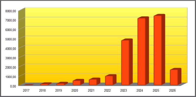 In der kompakten Übersicht der Jahresdividenden von 2017-2026 liegt das Jahr 2025 aktuell auf Platz 1, berechnet seit 2017 .