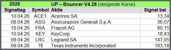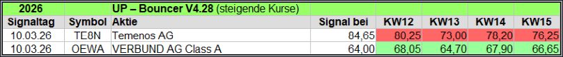 Übersicht der UP-Bouncer Signale je Woche 2026.